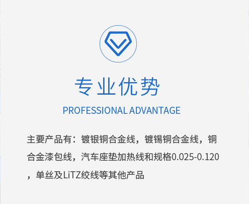 公司的主要产品有:镀银铜合金线,镀锡铜合金线,铜合金漆包线,汽车座垫加热线和规格0.025-0.120,单丝及LITZ绞线等其他产品。公司通过ISO9001质量管理体系及ISO14001环境管理体系认证,欢迎新老客户来电咨询!